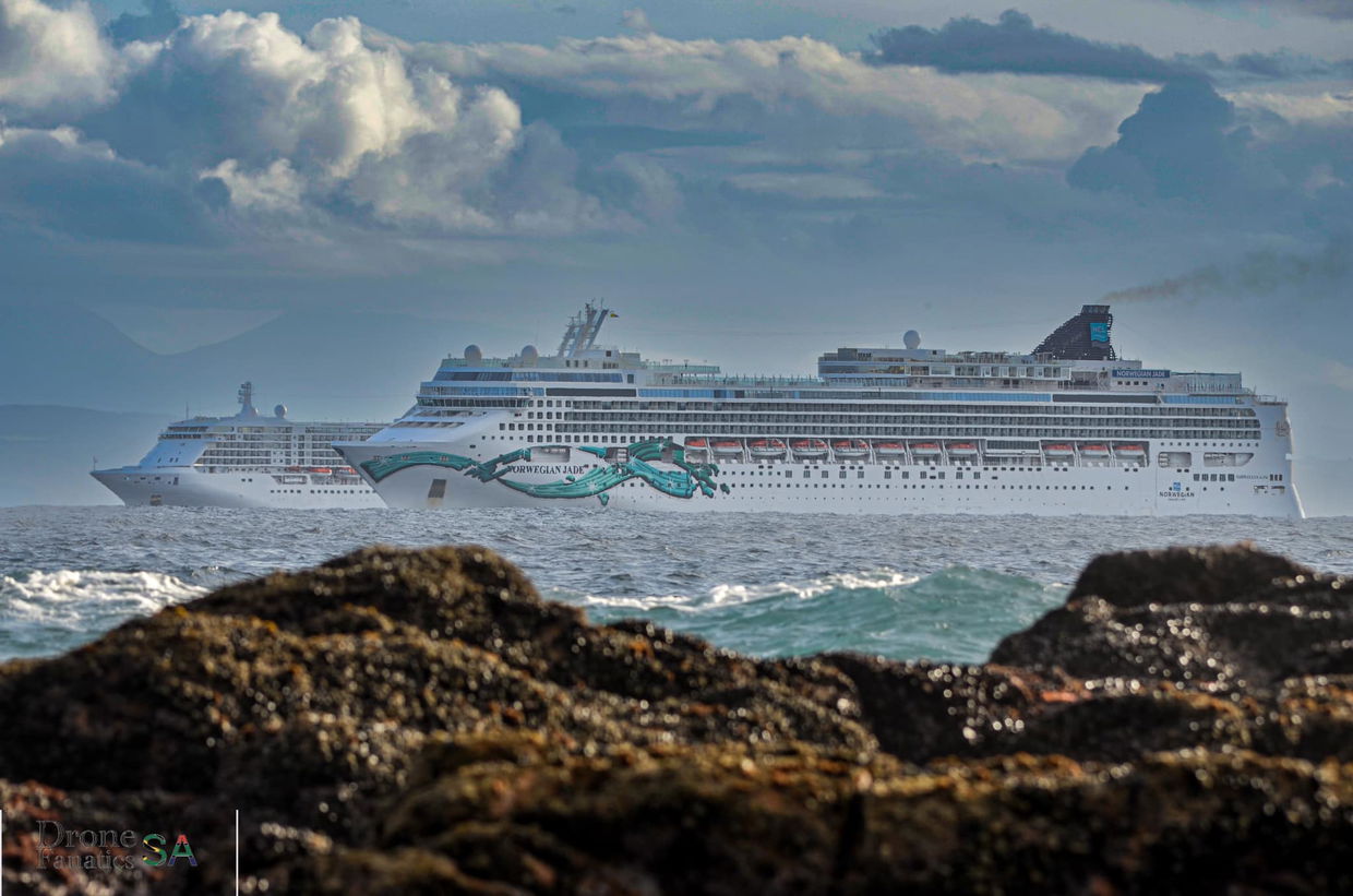 The Norwegian Jade (a Regular visitor). Photo Credit: Drone Fanatics SA
