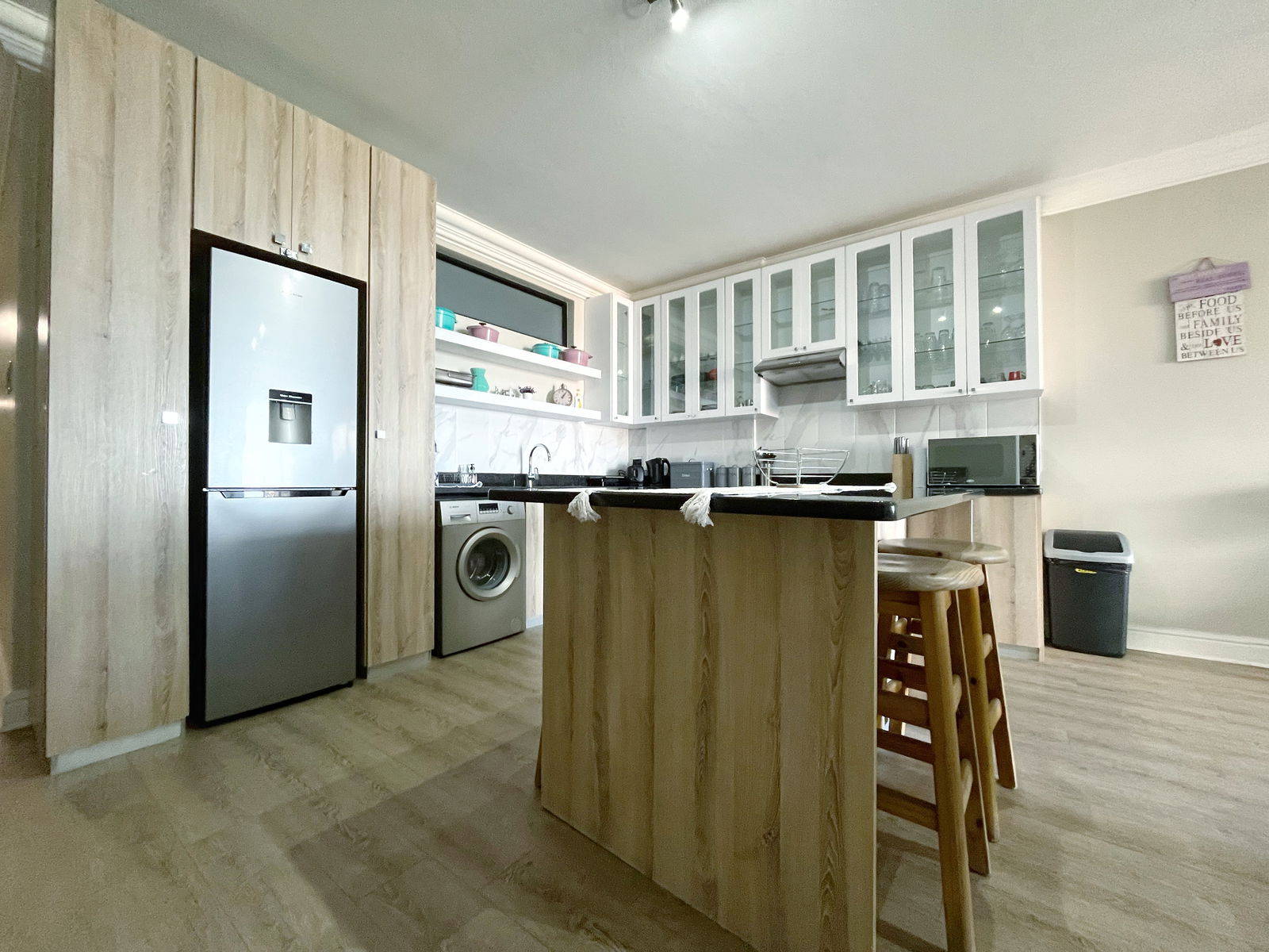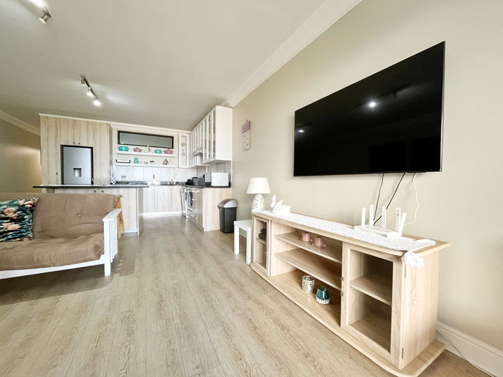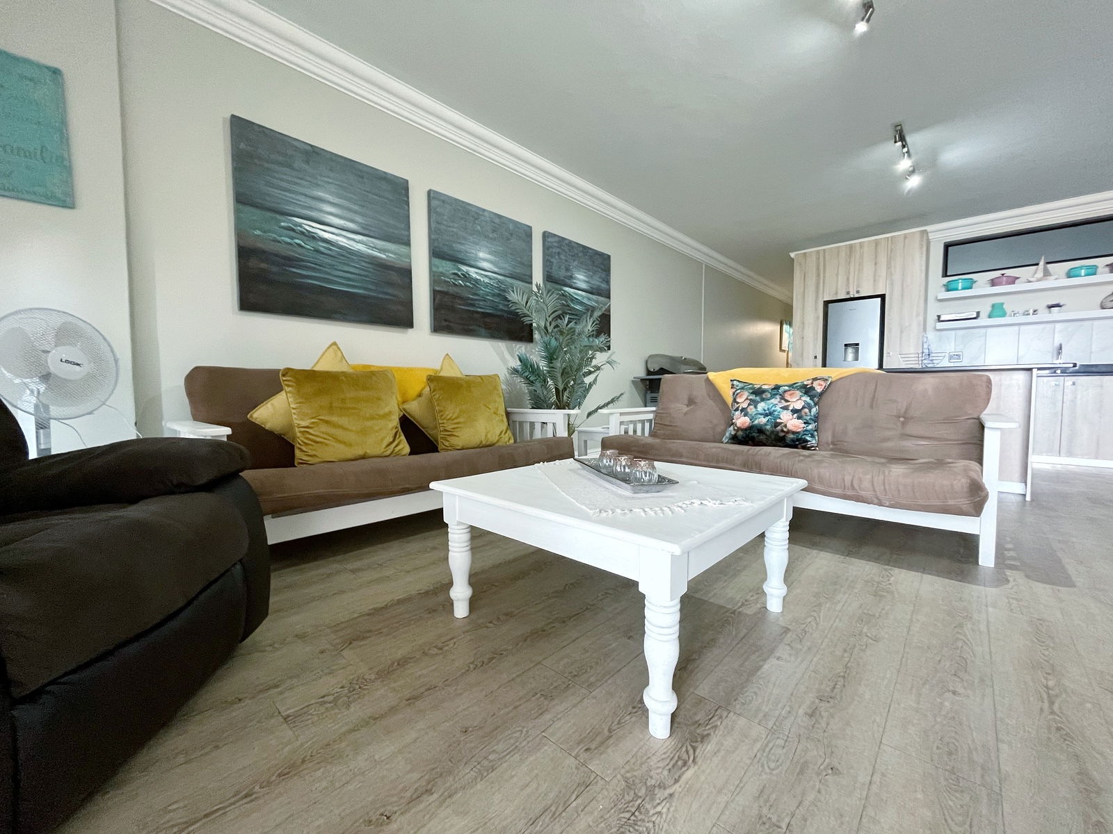 The unit is fully equipped and offers kitchen facilities, living space, Free Wi-Fi, Smart TV, patio with braai facilities, sea view, a communal swimming pool and direct beach access.