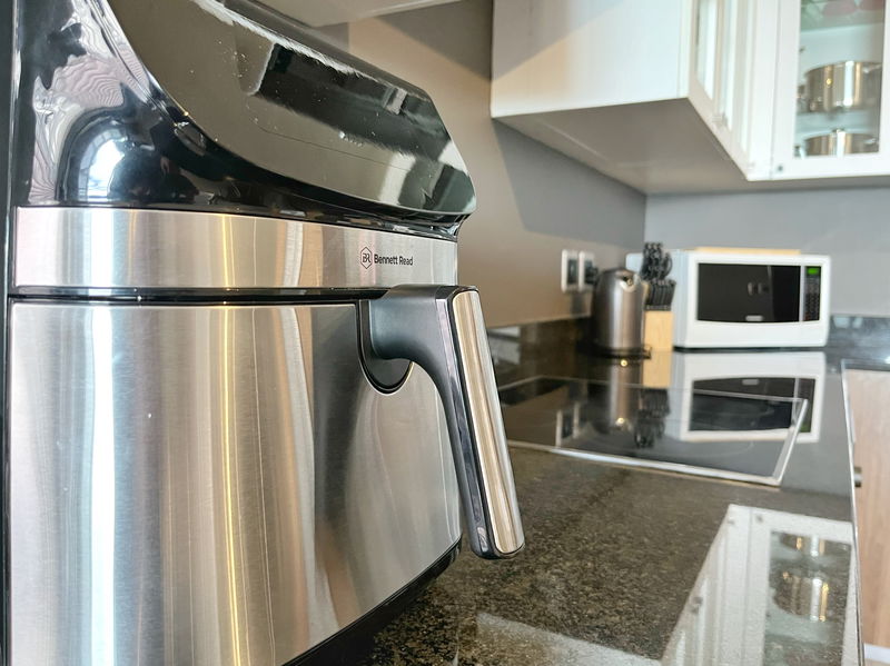 - Microwave, air fryer, oven, stove, fridge-freezer, and kitchen essentials