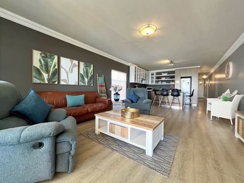 Welcome to Beach Club 401, a spacious and beautifully appointed 3-bedroom beachfront apartment located in one of Diaz Beach’s most sought-after complexes. Designed for both relaxation and convenience, this modern self-catering retreat is perfect for families or groups of friends seeking a memorable beachside getaway—with breathtaking ocean views and top-tier amenities at your doorstep.