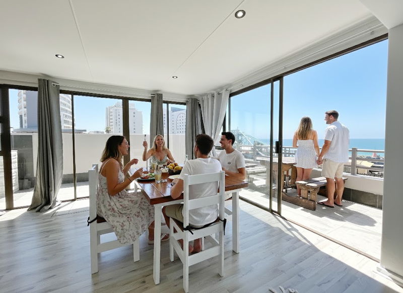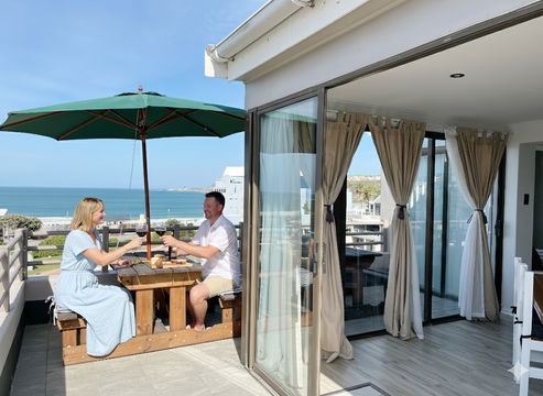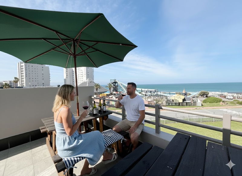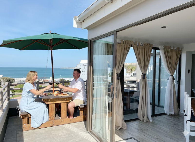 Balcony: Outdoor seating, braai facilities, and panoramic views of the ocean and the Diaz Waterpark