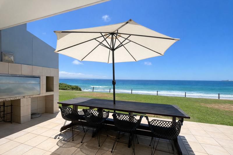Oceanfront Terrace with Braai: Outdoor seating and braai (BBQ) facilities. Soak up the sun, sip your morning coffee, or enjoy a sunset braai with the sound of crashing waves